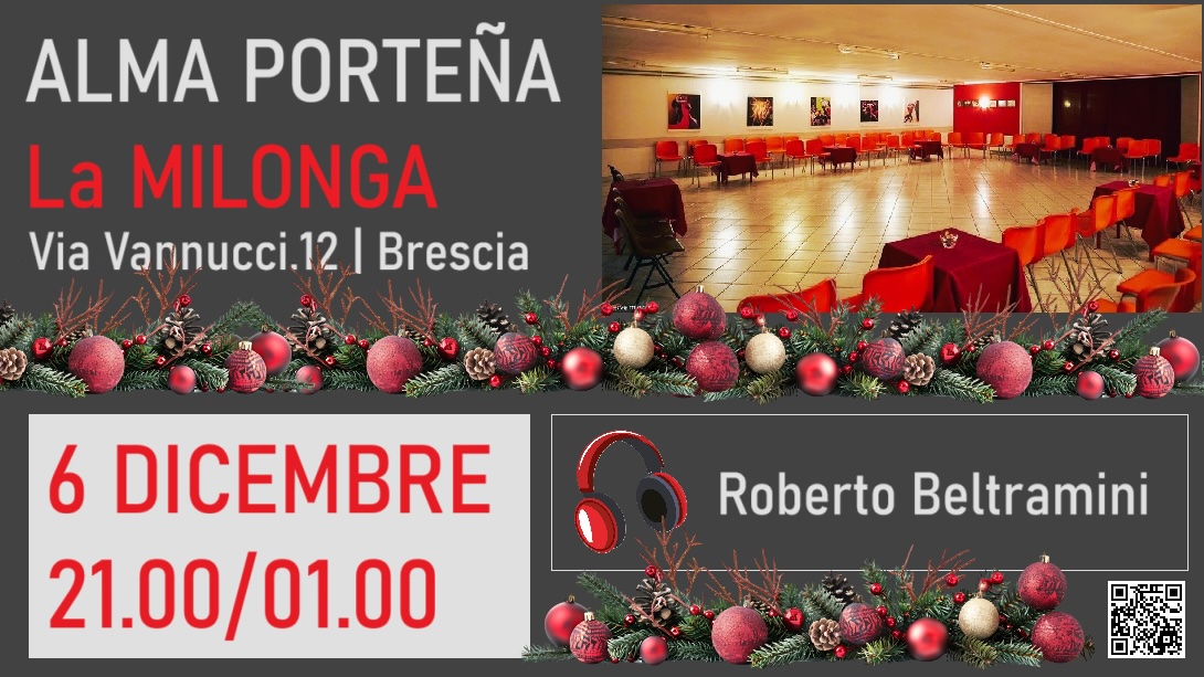 Alma Porteña la Milonga con Mirada e Cabeceo Sabato 6 Dicembre in consolle Roberto Beltramini Domenica
